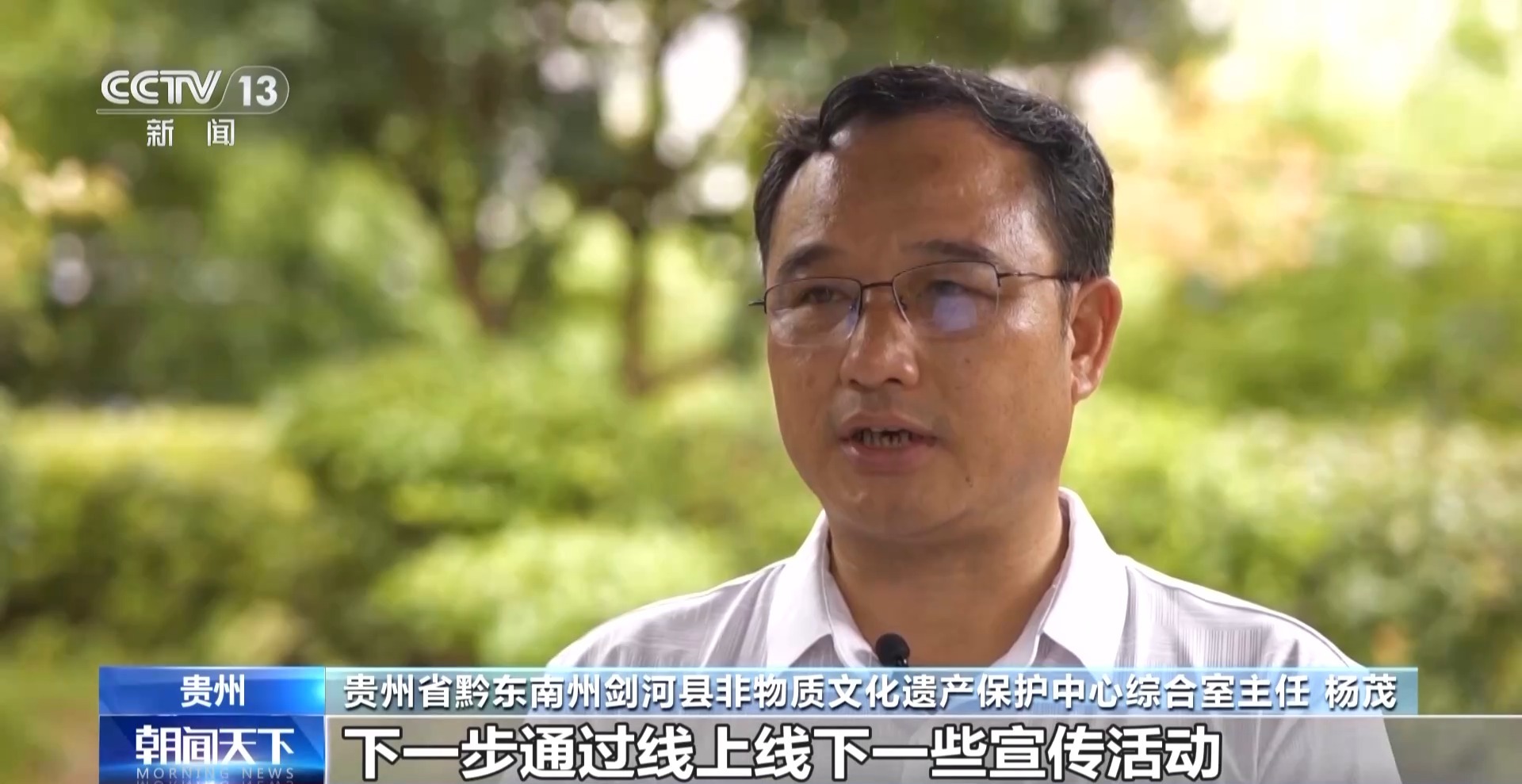 貴州省黔東南州劍河縣非物質(zhì)文化遺產(chǎn)保護中心綜合室主任 楊茂:下一步,通過線上線下一些宣傳活動,吸引更多的游客和設(shè)計師到劍河調(diào)研,把劍河的錫繡推廣出去,獲得更大的市場和發(fā)展空間。
