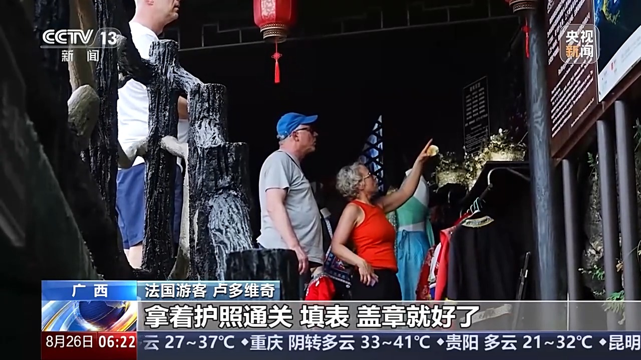 在廣西陽朔,法國游客盧多維奇告訴記者,自己和妻子一年前來中國的時(shí)候,簽證還是比較麻煩的,但是現(xiàn)在,情況完全不同了。