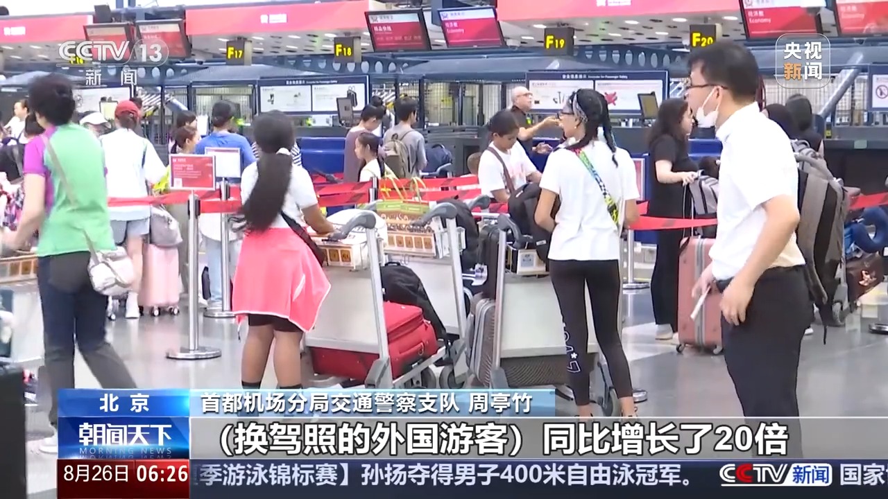 首都機(jī)場分局交通警察支隊(duì) 周亭竹:換駕照的外國游客同比要增長了20倍。中國的臨時(shí)駕駛許可,他只可以開租賃的汽車,私家車是不能開的,我們在窗口會提醒到他。