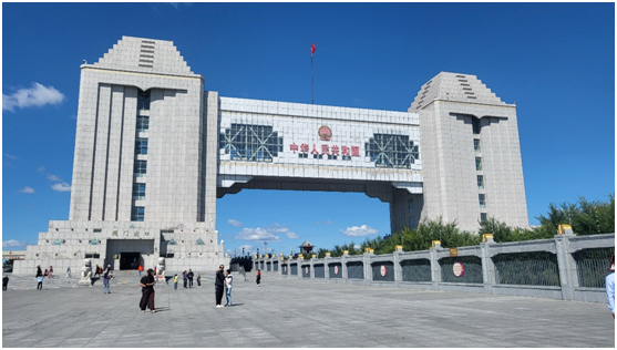 滿洲里口岸于1902年建成,在現(xiàn)國門處先后建設(shè)了四代國門,如今的國門建筑面積5905平方米,總長105米,寬46.6米,高43.7米,是我國邊境線上最大的國門,也是弘揚國威、展現(xiàn)國力的標志性建筑。