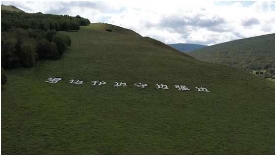 1984年7月,王玉發(fā)在阿爾山林業(yè)局林場(chǎng)工作期間,光榮地加入了中國共產(chǎn)黨。今年,王玉發(fā)迎來了加入中國共產(chǎn)黨的第40個(gè)年頭。為了慶祝這一特殊時(shí)刻,王玉發(fā)用1000余塊石磚堆砌出“愛民 護(hù)邊守邊 強(qiáng)邊”八個(gè)大字,成為山坡上一道壯觀的風(fēng)景線。