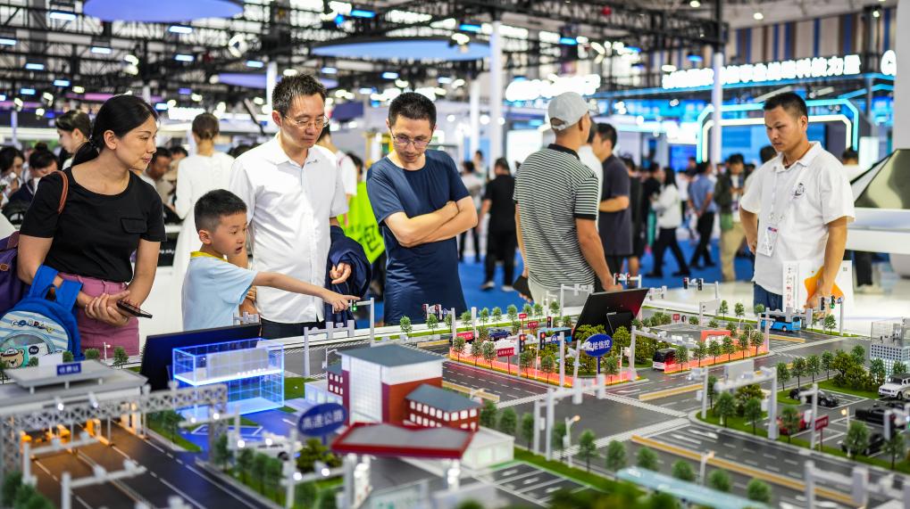 8月28日,觀展者在2024中國(guó)國(guó)際大數(shù)據(jù)產(chǎn)業(yè)博覽會(huì)會(huì)場(chǎng)參觀智慧交通系統(tǒng)。新華社記者 陶亮 攝