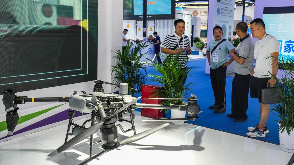 8月28日,觀展者在2024中國(guó)國(guó)際大數(shù)據(jù)產(chǎn)業(yè)博覽會(huì)會(huì)場(chǎng)參觀新型智能無(wú)人機(jī)。 新華社記者 陶亮 攝
