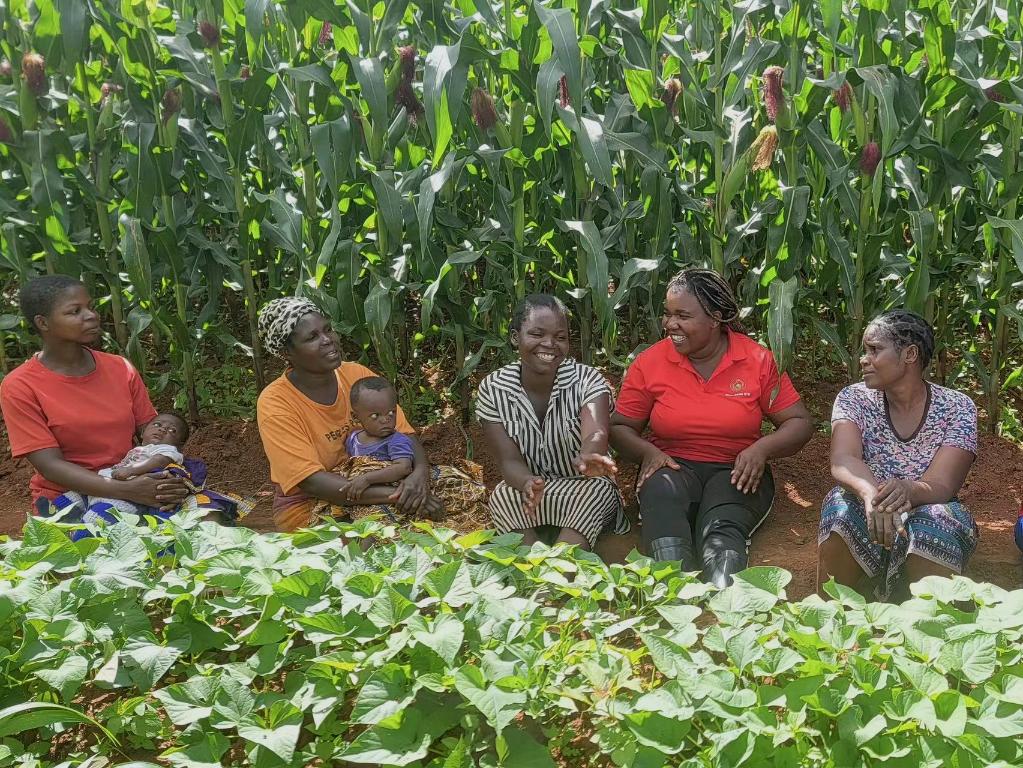“中非科技小院”留學(xué)生庫(kù)瓦莉(右二)在馬拉維鄉(xiāng)村和農(nóng)民們一起討論中國(guó)“大豆—玉米間作技術(shù)”(2月5日攝)。新華社發(fā)(受訪(fǎng)者供圖)