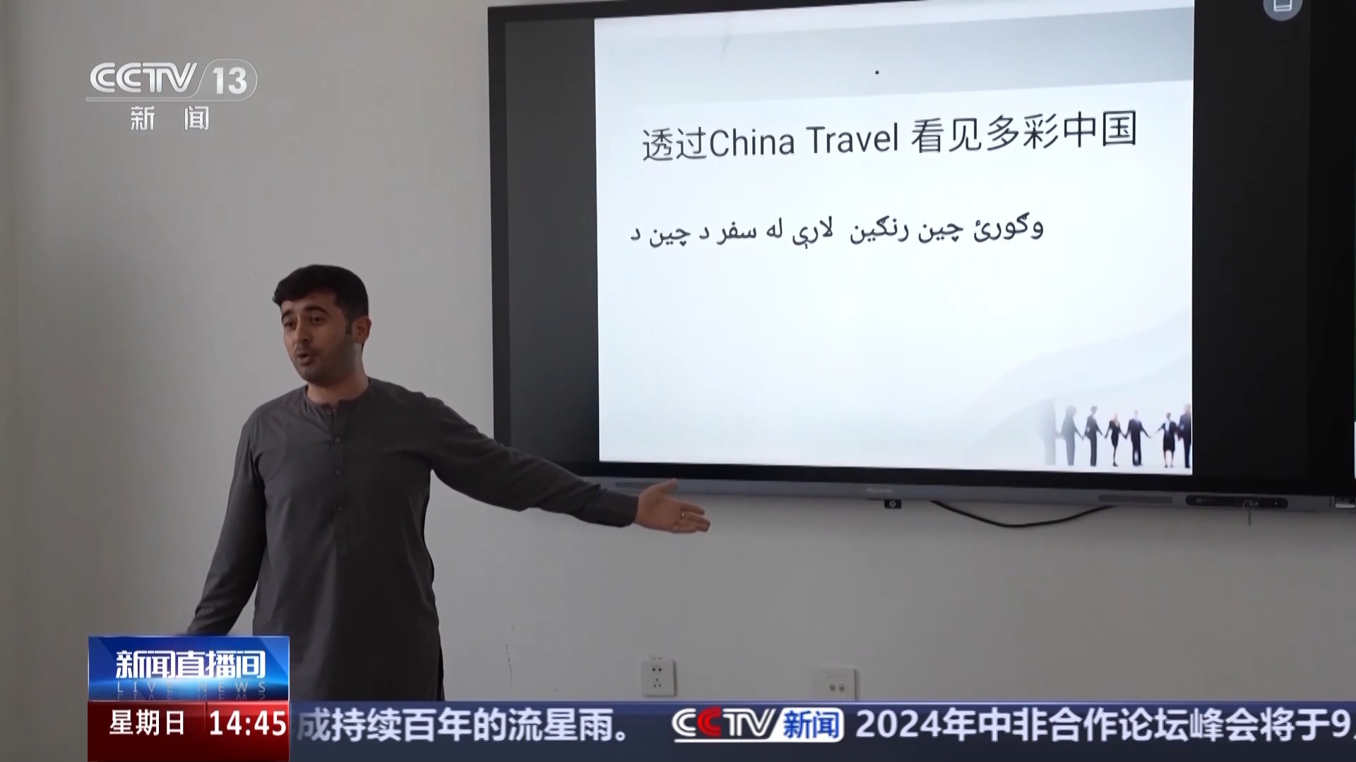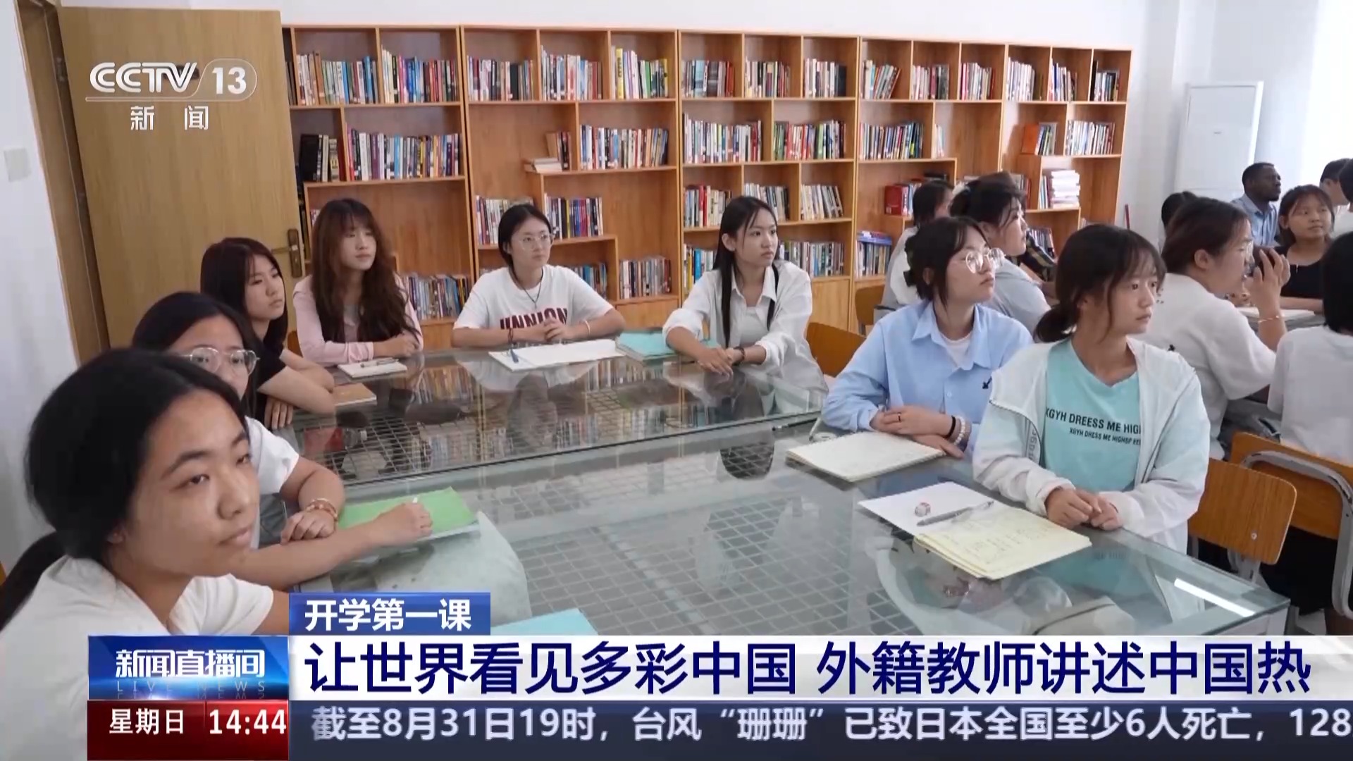 新學期開學,在河北外國語學院語言教室,來自不同國家的外籍教師以“透過China Travel 看見多彩中國”為主題為同學們講授開學第一課。