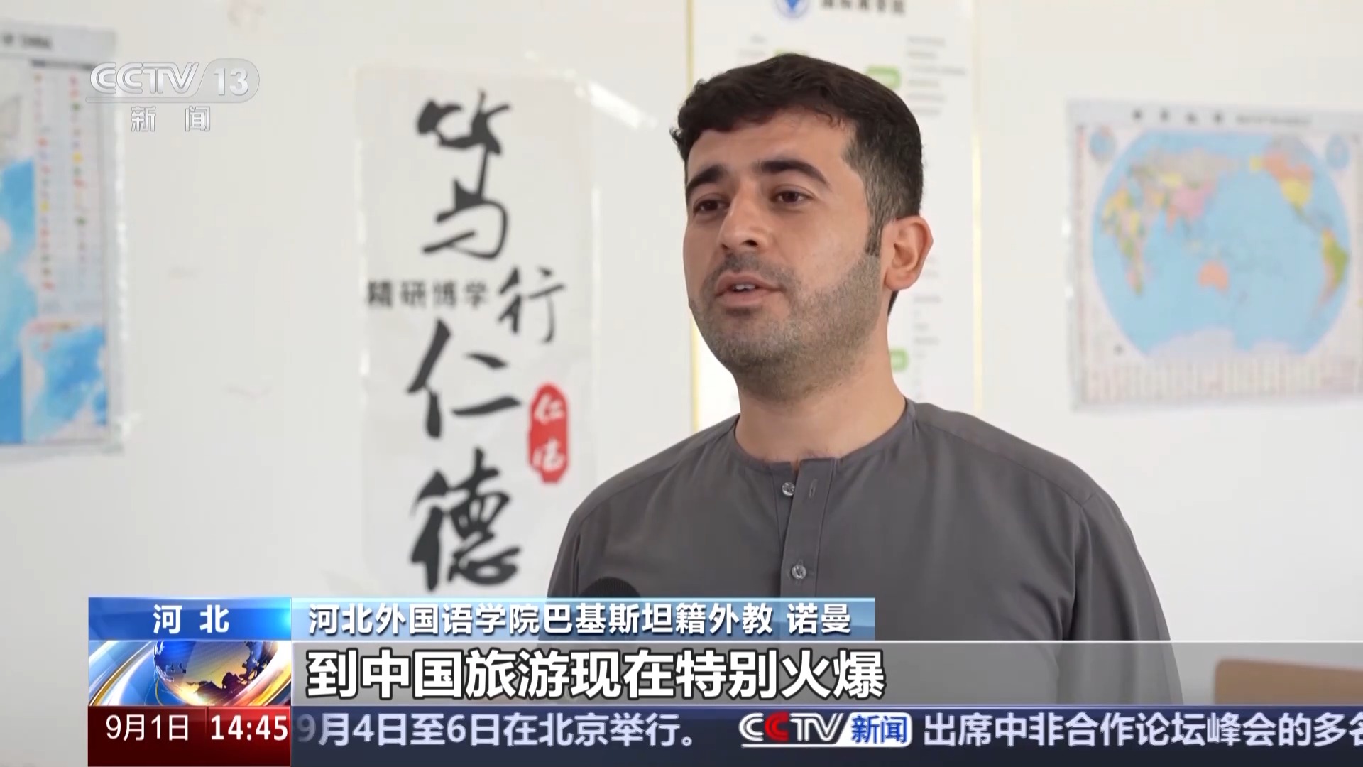 河北外國語學院巴基斯坦籍外教 諾曼:到中國旅游現在特別火爆,包括巴基斯坦在內,許多國家的人都來到中國,愛上了中國的美食和文化,感受這里各種便捷舒適的生活方式,我身邊還有很多留學生朋友都很享受在這里的學習生活。