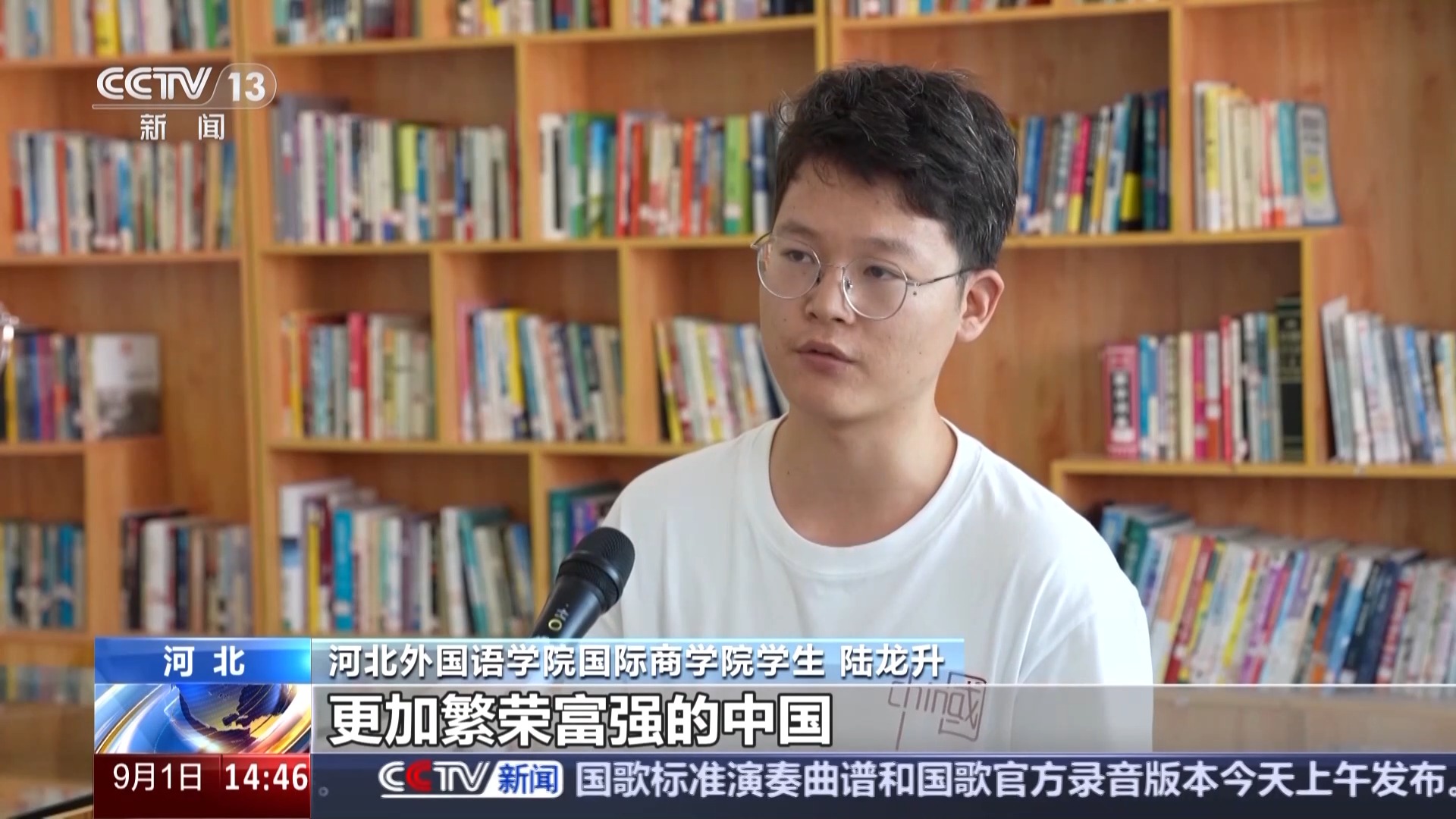 河北外國語學院國際商學院學生 陸龍升:我想通過自己的努力,以后可以讓更多的外國人看到真實的中國,更加繁榮富強的中國。