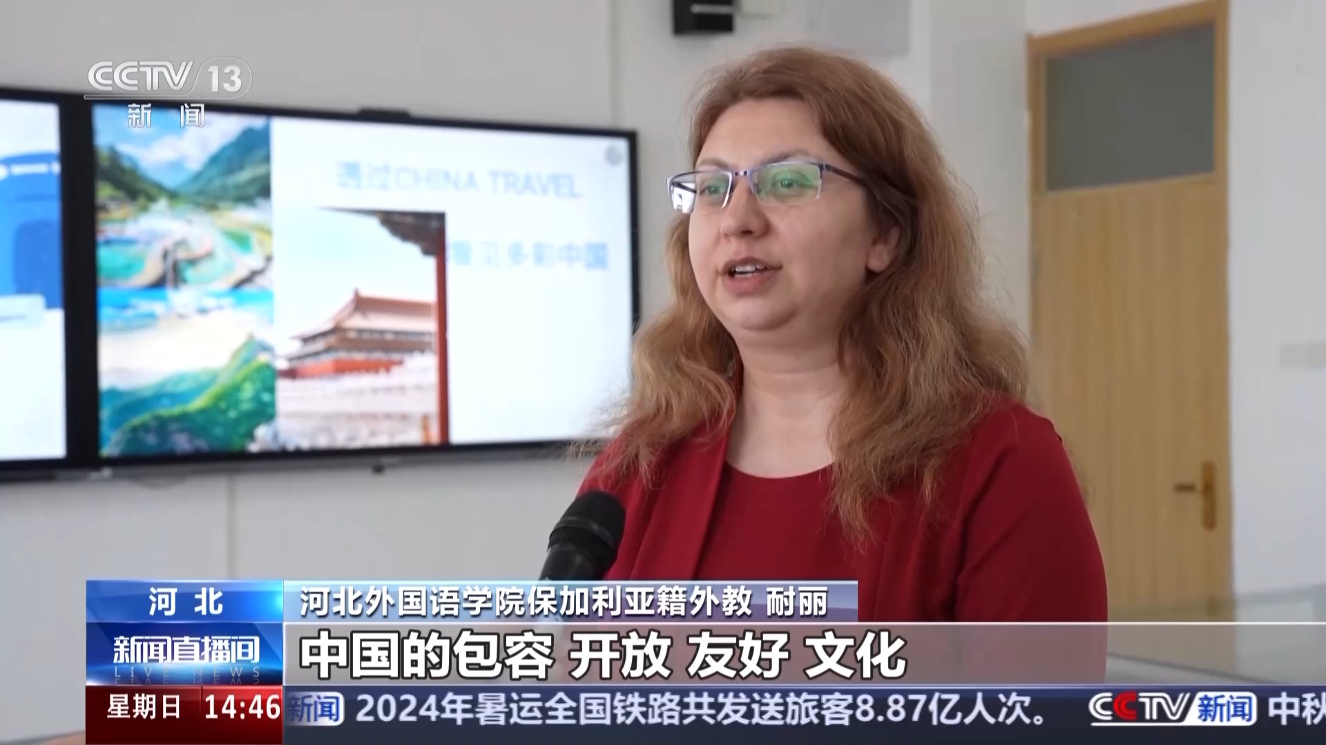河北外國語學院保加利亞籍外教 耐麗:我是9年之前來到中國的,中國的包容、開放、友好、文化讓我非常喜歡在這里,我在這里也一直看著中國的變化和發(fā)展,我希望跟更多人分享我在這里感受到的多彩的中國。