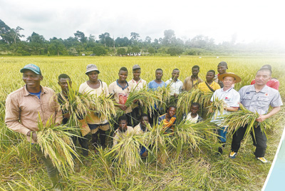 位于科特迪瓦迪沃省的格格杜墾區(qū)于1997年迎來第一批中國農(nóng)業(yè)技術(shù)合作組專家,經(jīng)過近30年的努力,墾區(qū)已成為中科兩國農(nóng)業(yè)合作示范基地和科特迪瓦全國聞名的水稻種植基地。圖為中國農(nóng)業(yè)專家與當(dāng)?shù)剞r(nóng)民在水稻田中慶祝豐收。