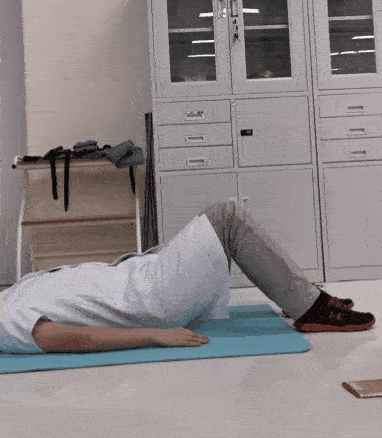 平躺在墊子上,雙腿分開,與肩同寬,雙手置于身體兩側(cè)。緩慢向上做抬臀動(dòng)作,停留一會兒,然后恢復(fù)至初始動(dòng)作。此為一個(gè)完整動(dòng)作。8~12次/組,做3組。