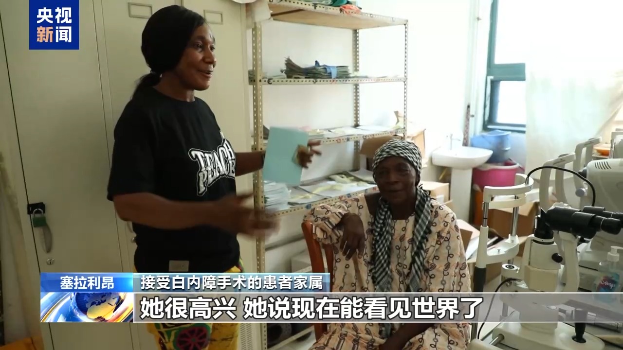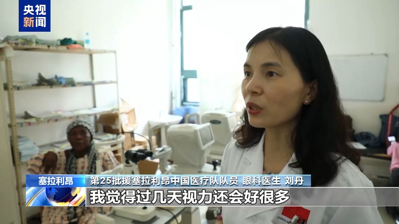 第25批援塞拉利昂中國醫(yī)療隊隊員 眼科醫(yī)生 劉丹:這是昨天一個(接受)白內(nèi)障手術(shù)的病人,她術(shù)前的視力只能看見眼前的手在動,手指頭都分辨不太清楚。今天一打開(紗布)視力是0.3,我覺得過幾天視力還會好很多。