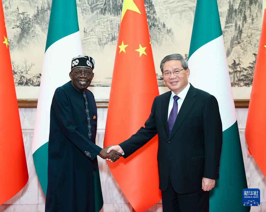 國務(wù)院總理李強9月4日上午在北京釣魚臺國賓館會見來華出席中非合作論壇北京峰會并進行國事訪問的尼日利亞總統(tǒng)提努布。