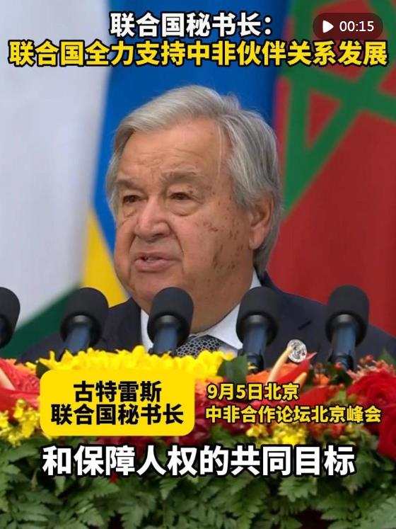 聯(lián)合國秘書長古特雷斯5日在中非合作論壇北京峰會開幕式上說,聯(lián)合國將全力參與支持中非發(fā)展堅固的伙伴關(guān)系,推動世界實現(xiàn)和平、可持續(xù)發(fā)展和保障人權(quán)的共同目標(biāo)。