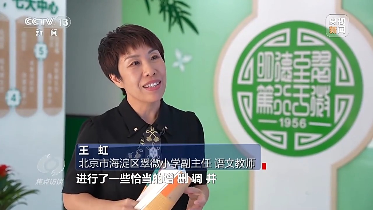 北京市海淀區(qū)翠微小學(xué)副主任、語文教師 王虹:拿到教材,我們心里特別踏實,我們發(fā)現(xiàn)這個教材進(jìn)行了一些恰當(dāng)?shù)脑?、刪、調(diào)、并。一年級上學(xué)期識字量上原來是300個,現(xiàn)在280個,還有一些對學(xué)生理解起來有一些難度的課文,也進(jìn)行了刪減或者調(diào)整。