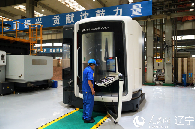 技術人員在沈鼓生產(chǎn)車間里調整設備參數(shù)。人民網(wǎng)記者 邱宇哲攝