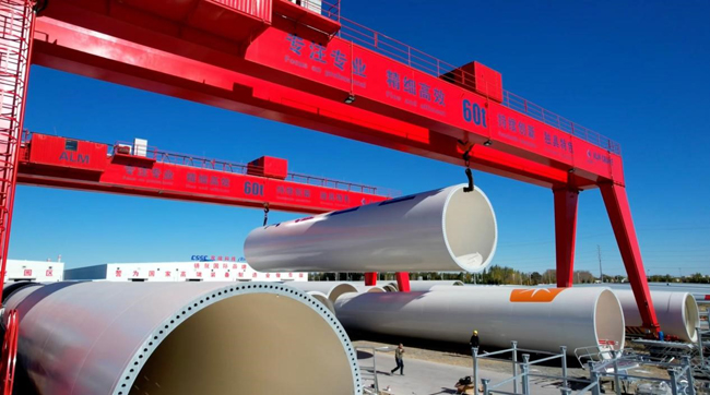 蒙東(通遼)風電裝備制造產(chǎn)業(yè)基地內,一排排風葉和塔筒即將運往全國各地。林林攝