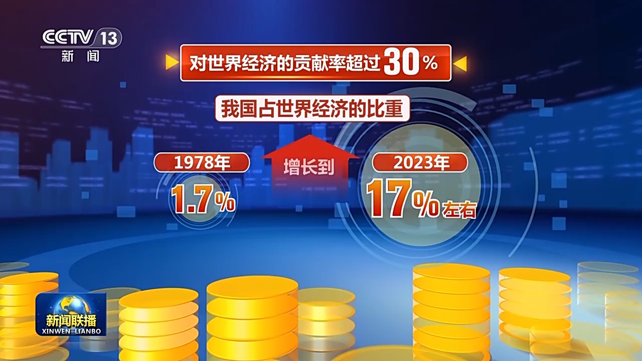 我國占世界經(jīng)濟(jì)的比重,從有數(shù)據(jù)統(tǒng)計以來的1978年的1.7%,增長到2023年的17%左右,對世界經(jīng)濟(jì)的貢獻(xiàn)率超過30%。