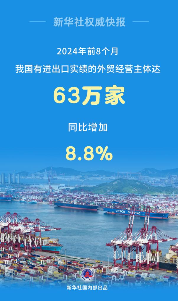 有進(jìn)出口實(shí)績(jī)的外貿(mào)經(jīng)營主體達(dá)63萬家