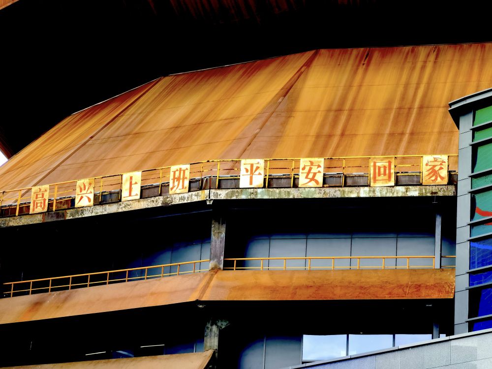 2024年9月11日,四高爐懸掛的老標語。新華社記者 夏子麟 攝