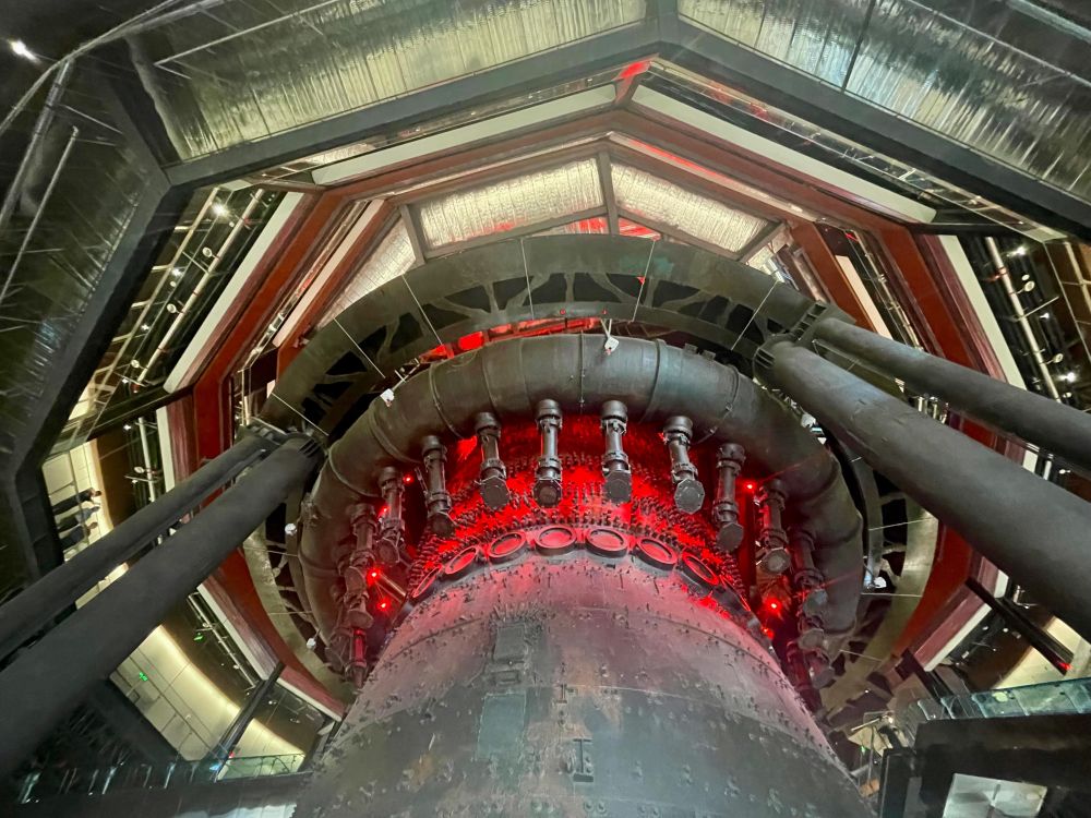更絕妙的是,四高爐巨大的爐芯得以保留。伴著紅色燈光照映,爐火仿佛再次升騰而起。年輕人感覺到“賽博朋克”,年長者聯(lián)想到“鐵色記憶”,專業(yè)人士看到了“城市更新”。這是高爐生命的最好延續(xù)。