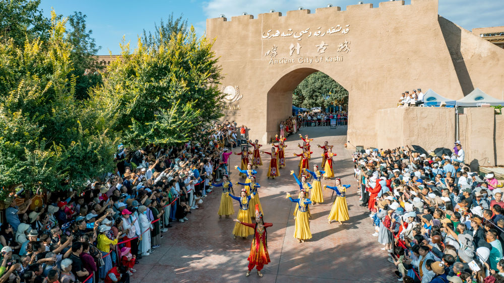 新疆喀什古城景區(qū)開城儀式現(xiàn)場。新華社發(fā)(熱衣丁·蘇來曼 攝)
