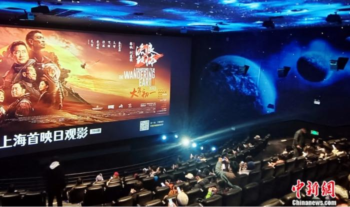 2023年1月22日,影迷在上海一電影院觀(guān)看國(guó)產(chǎn)科幻片《流浪地球2》。陳玉宇 攝