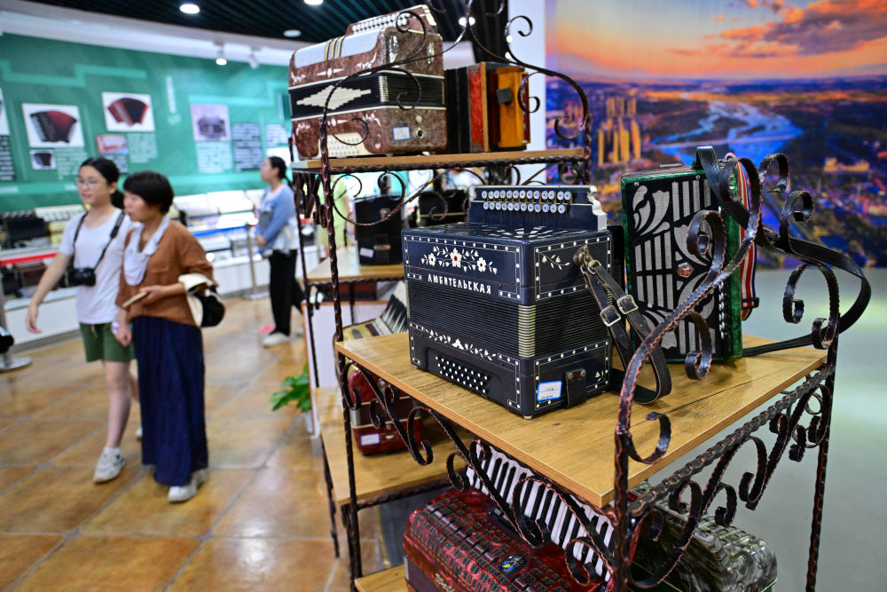 音樂舞蹈之所以在這里深受喜愛,與多民族文化在此深度交流交融密不可分。六星街上有一座亞歷山大手風琴珍藏館,800多架來自俄羅斯、意大利、德國、捷克等國的精品手風琴在此靜靜陳列,其中不乏手風琴中的“古董”珍品。這些手風琴的主人亞歷山大·謝爾蓋維奇·扎祖林是國家級非物質文化遺產——俄羅斯族“巴揚(鍵鈕式手風琴)藝術”非遺傳承人?!坝们俾曌層慰透惺艿搅墙值拿利愊楹褪俏业男脑?。”亞歷山大說。