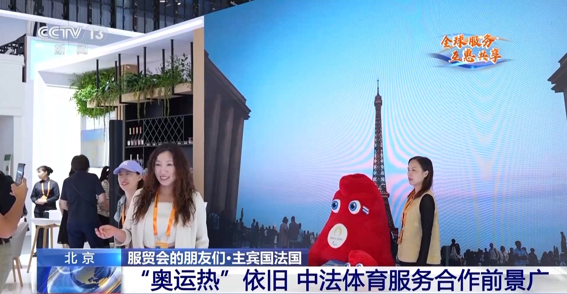 此次參會,法國國家館設(shè)計了三大主題的展示和活動,體育是其中之一。記者在現(xiàn)場發(fā)現(xiàn),奧運五環(huán)、巴黎奧運會吉祥物“弗里熱”等元素依舊吸引了不少觀眾打卡拍照。娛樂文化與體育服務(wù)是服務(wù)貿(mào)易的重要領(lǐng)域。在本屆服貿(mào)會上,一些法國參展商也在尋求體育服務(wù)相關(guān)合作機會。