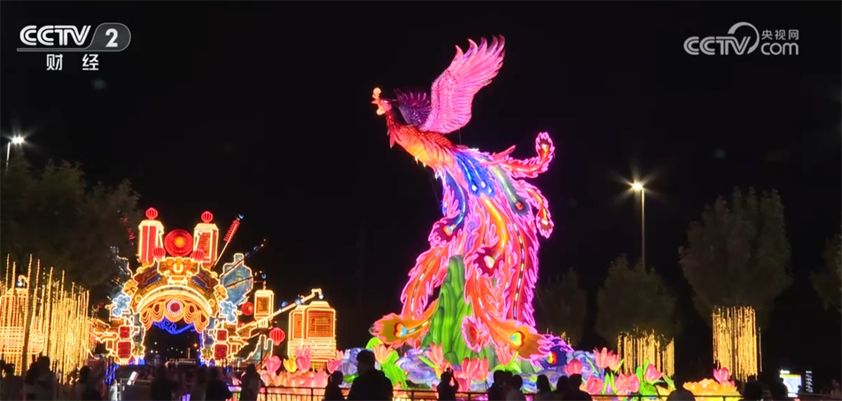 現(xiàn)場(chǎng)展出的彩燈有著“高、大、新、奇、特”等特點(diǎn),其中,大型燈組迎賓門長(zhǎng)約80米,單個(gè)燈籠最大直徑就達(dá)15米;還有采用“彩色吹塑紙+透明亞克力”材質(zhì)的“鳳舞九天”燈組,這只“鳳凰”全身共有4萬(wàn)片羽毛,每一片羽毛都由工匠手工剪制而成,燈組總剪制量就高達(dá)800萬(wàn)剪。