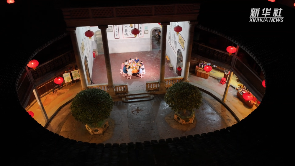 福建土樓內(nèi)通常住著一個(gè)或多個(gè)大家族,每逢節(jié)慶或重大活動(dòng),家族成員會(huì)聚集在一起,共同慶祝。