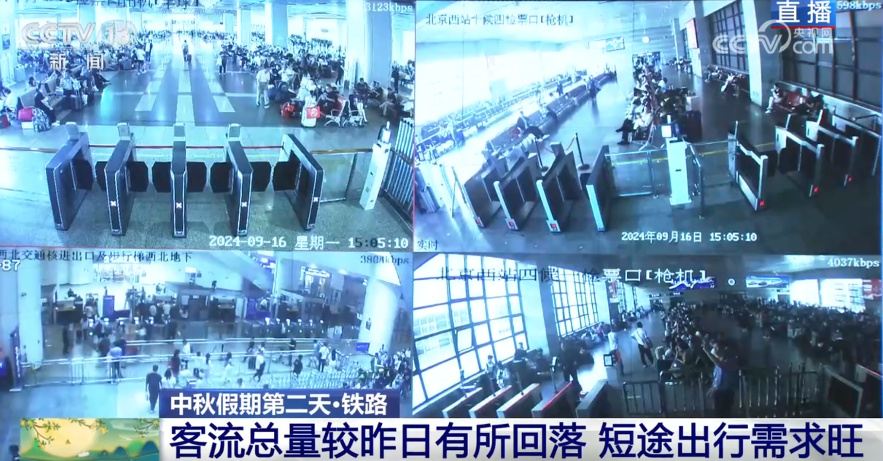 9月16日是中秋假期的第二天,哪些地方是大家的熱門出游地?先來看看鐵路出行。16日,鐵路出行客流以短途探親客流為主,預(yù)計發(fā)送旅客1180萬人次。16日鐵路短途出行需求旺盛,詳細情況,我們馬上連線正在國鐵集團運輸調(diào)度指揮大廳采訪的總臺央視記者楊麗君。