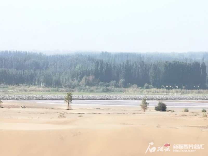 流淌的尼雅河將民豐縣城綠洲與沙漠隔開,成為阻擋風沙的最后屏障。石榴云/新疆日報記者 曹華攝