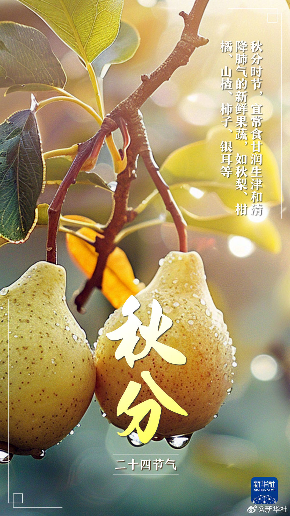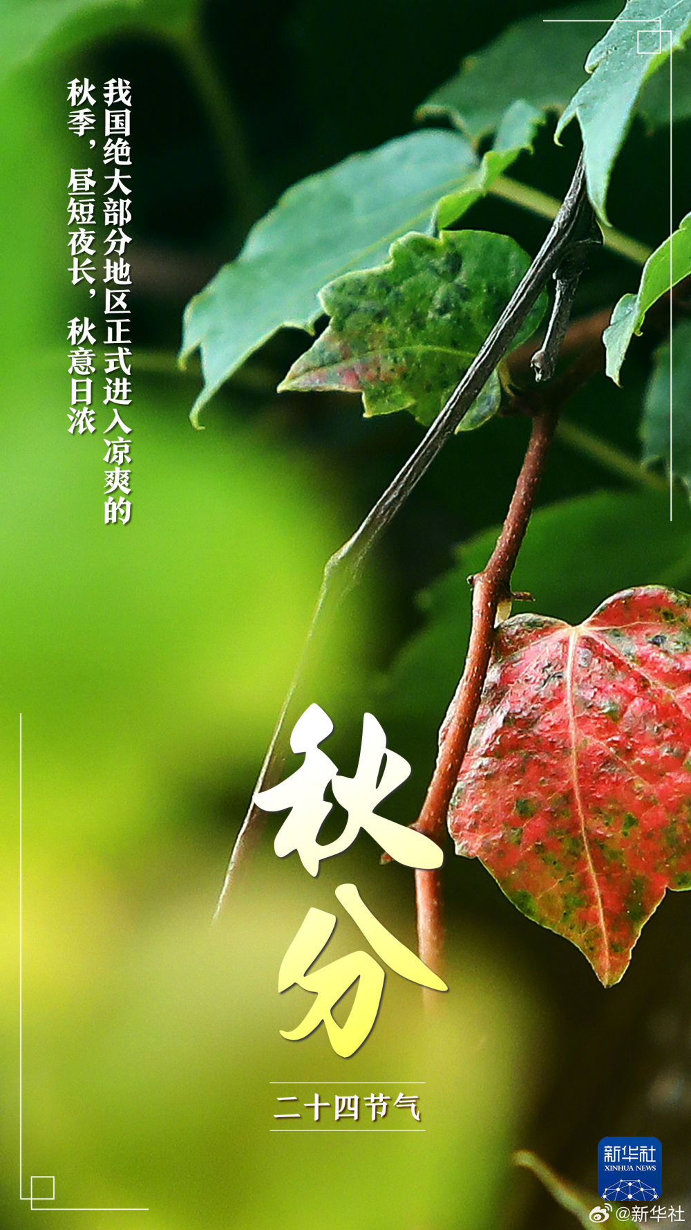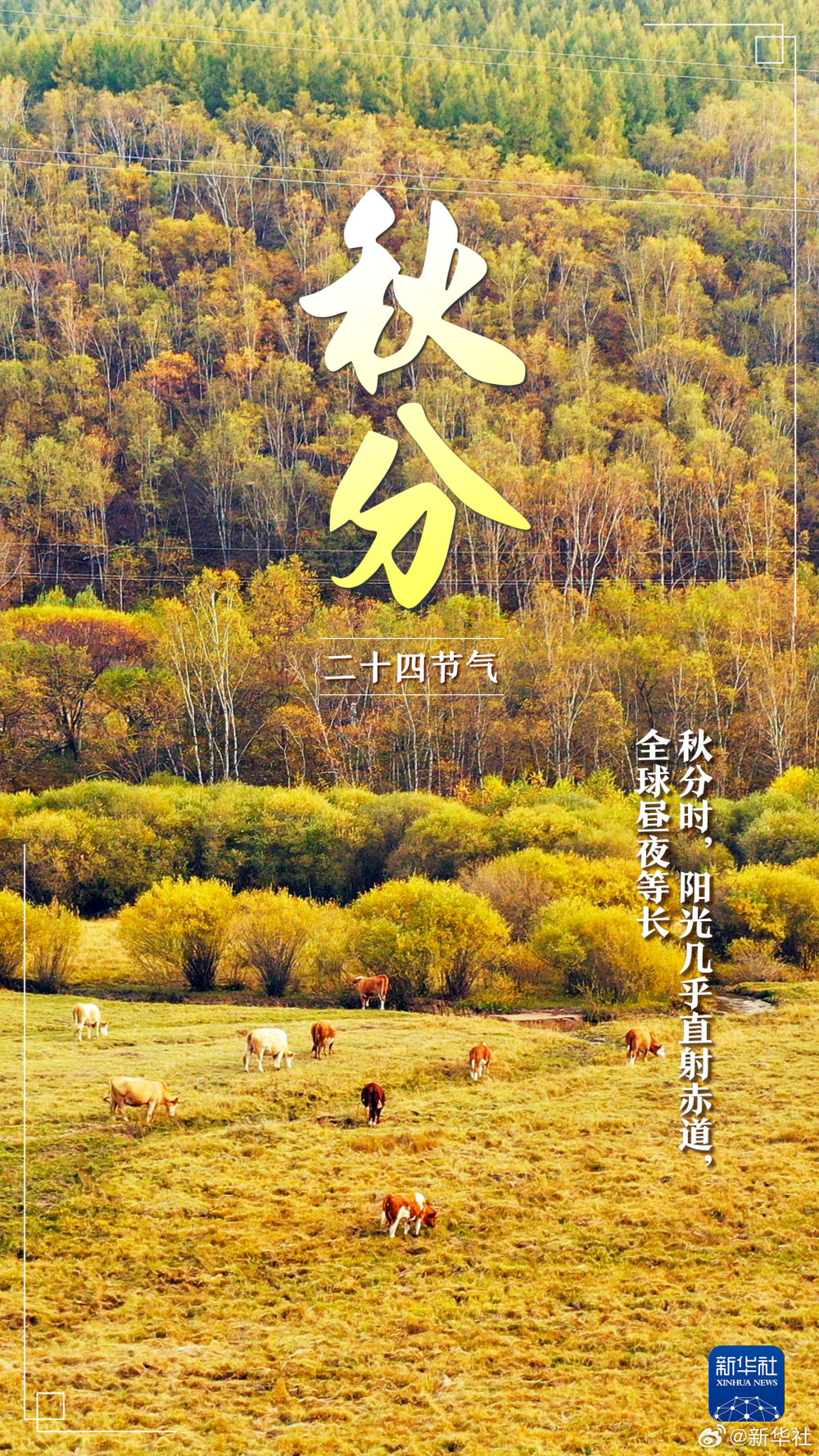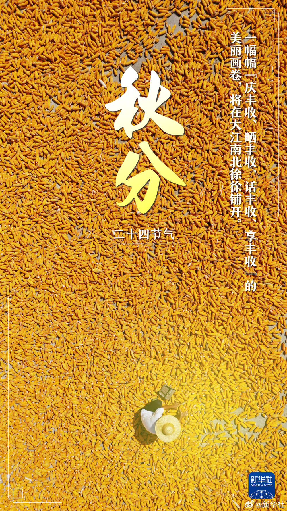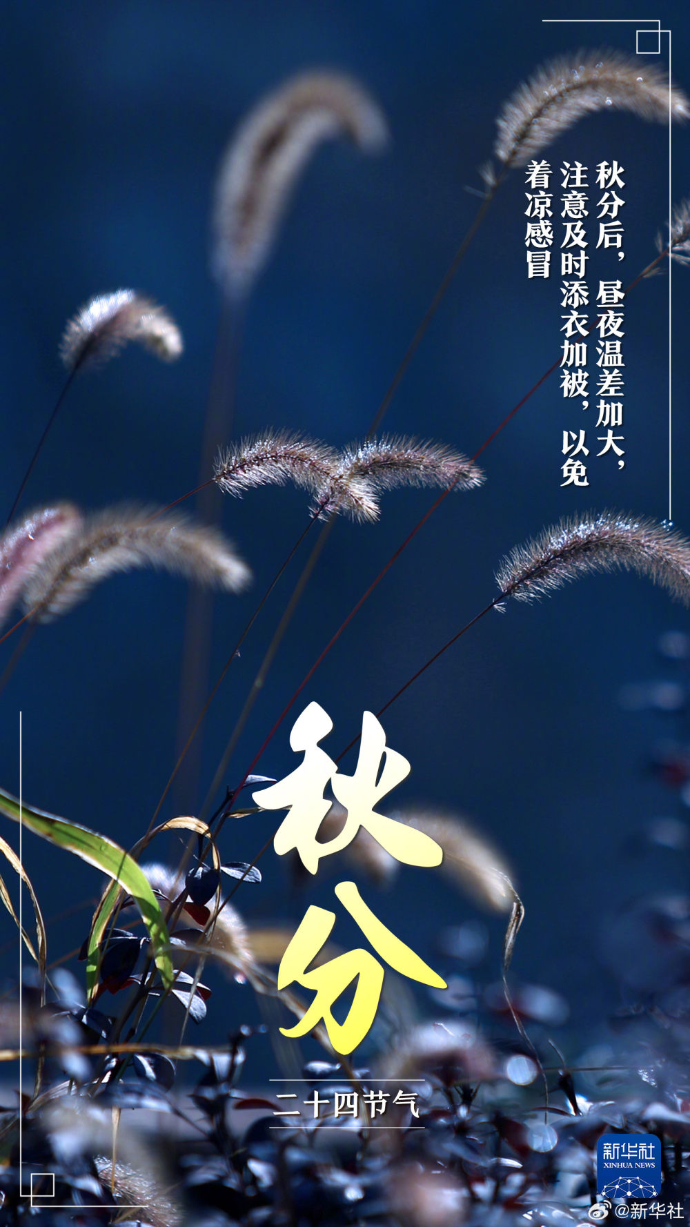 【今日秋分,共慶豐收】①北京時間9月22日20時43分迎秋分;②秋分陽光幾乎直射赤道,晝夜等長;③秋分后晝夜溫差加大,記得及時添衣加被;④秋分也是農民豐收節(jié)。讓我們在瓜果飄香、碩果累累的喜悅中,一起迎接收獲的金秋!