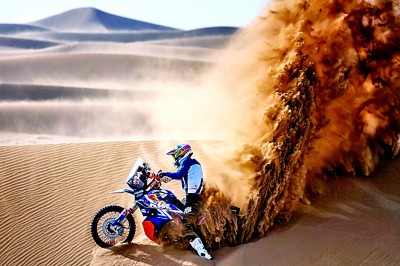 越野摩托車馳騁在巴丹吉林沙漠中。韓寶花攝