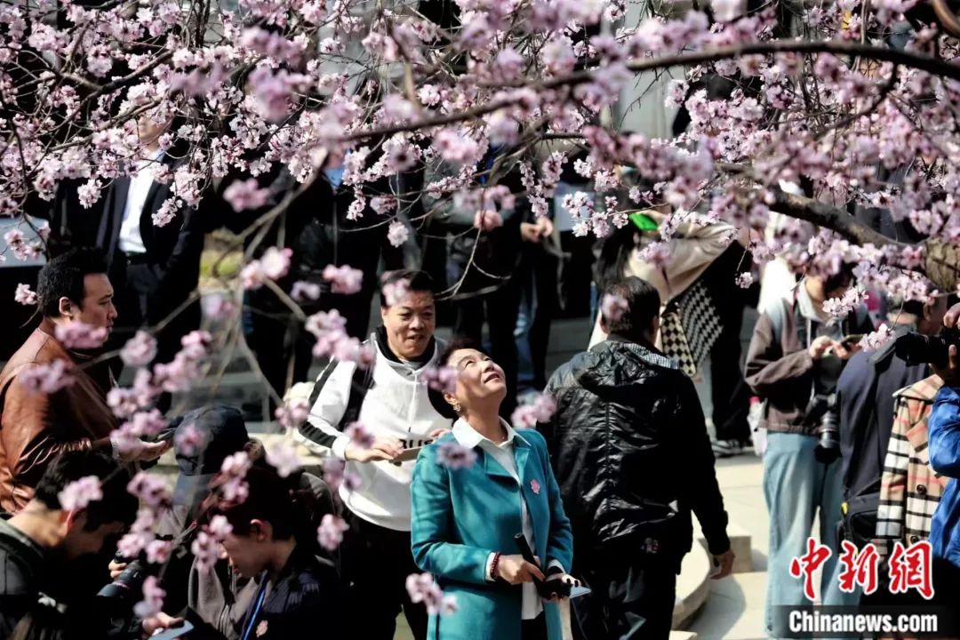 3月15日,民眾在天津北運(yùn)河畔的桃花堤,賞桃花美景,品味運(yùn)河文化。中新社記者 佟郁 攝