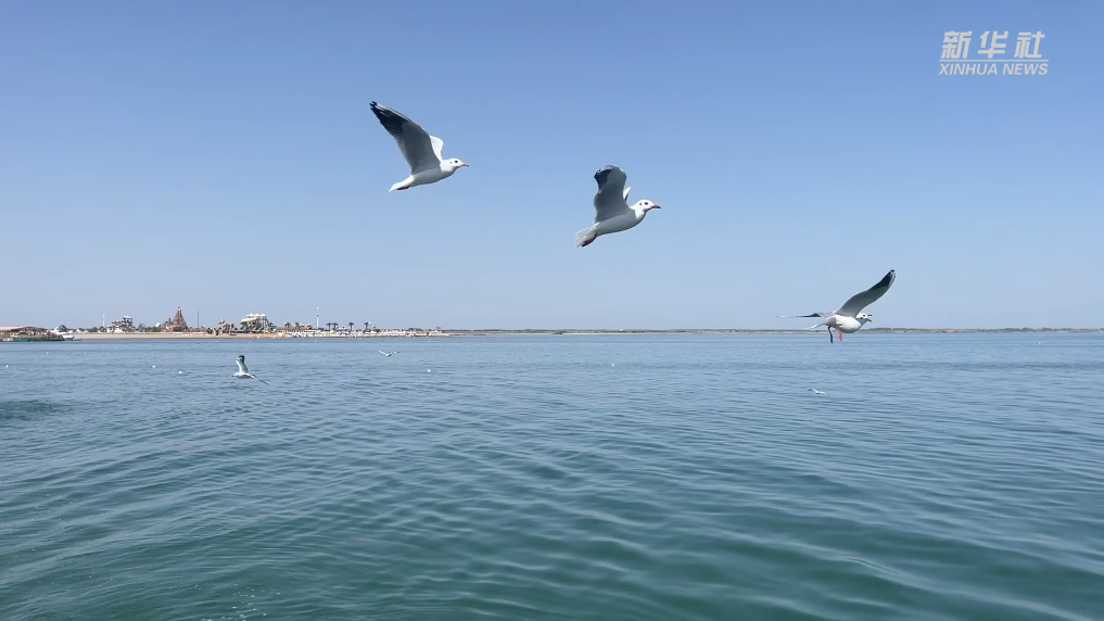 金秋時節(jié),我國最大內(nèi)陸淡水湖——新疆博斯騰湖天青水美,景色宜人。