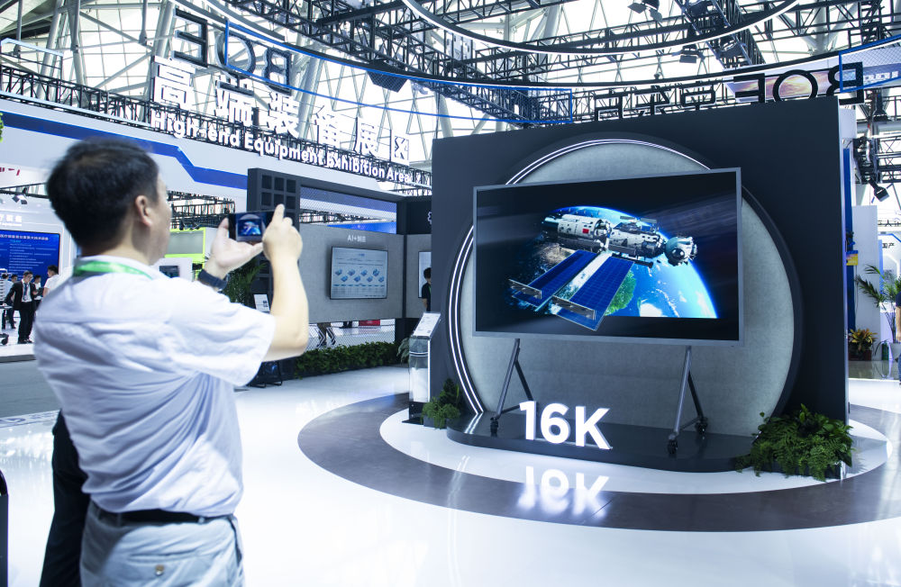 9月20日,觀眾在2024世界制造業(yè)大會展館內(nèi)了解16K裸眼3D屏幕。新華社記者 傅天 攝