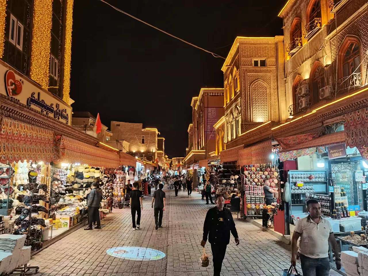 入夜,漫步在新疆喀什古城,各色燈光打在土黃主色調(diào)的墻體,勾勒出溫暖柔和的光暈。傳統(tǒng)與“摩登”在這里碰撞,異域與本土風(fēng)情在這里交融,“汗巴扎”夜市里各式各樣民族特色美食考驗著味蕾,各民族人們載歌載舞,共度屬于他們的歡樂時光。