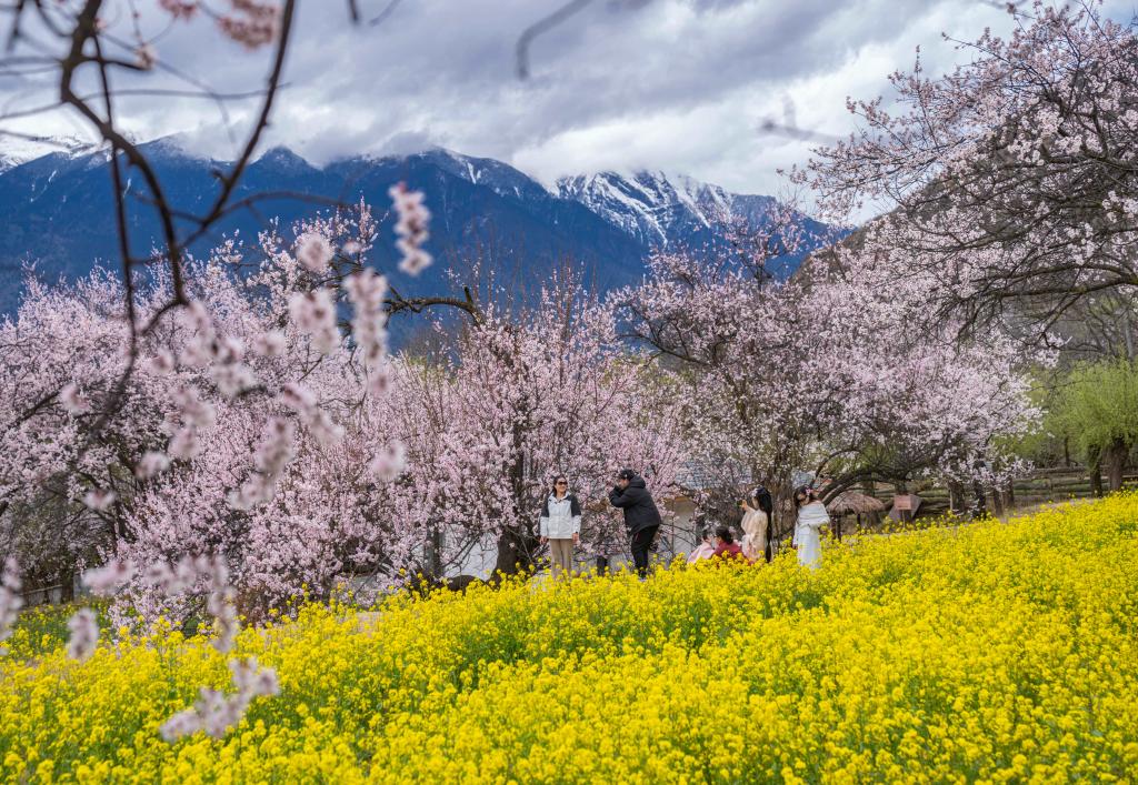 2024年3月31日,游客在西藏林芝嘎拉村拍照留念。新華社記者孫非 攝