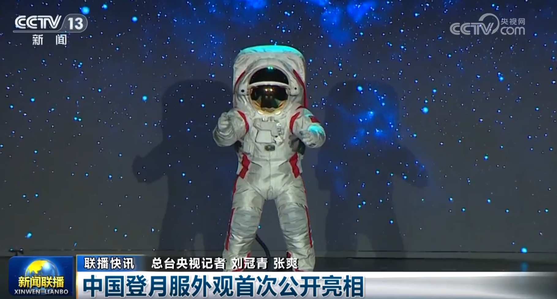 9月28日,中國載人航天工程辦公室面向社會發(fā)布登月服征名活動,并首次公開中國登月服外觀。此次亮相的中國登月服外觀,上身裝飾帶設(shè)計融合了飛天飄帶的優(yōu)雅飄逸和傳統(tǒng)鎧甲的硬朗厚重,體現(xiàn)了剛?cè)岵闹袊軐W(xué);腿部裝飾帶設(shè)計成火箭升空尾焰造型,與上身呼應(yīng),形成一飛沖天的勢態(tài),體現(xiàn)了中國騰飛的設(shè)計理念。