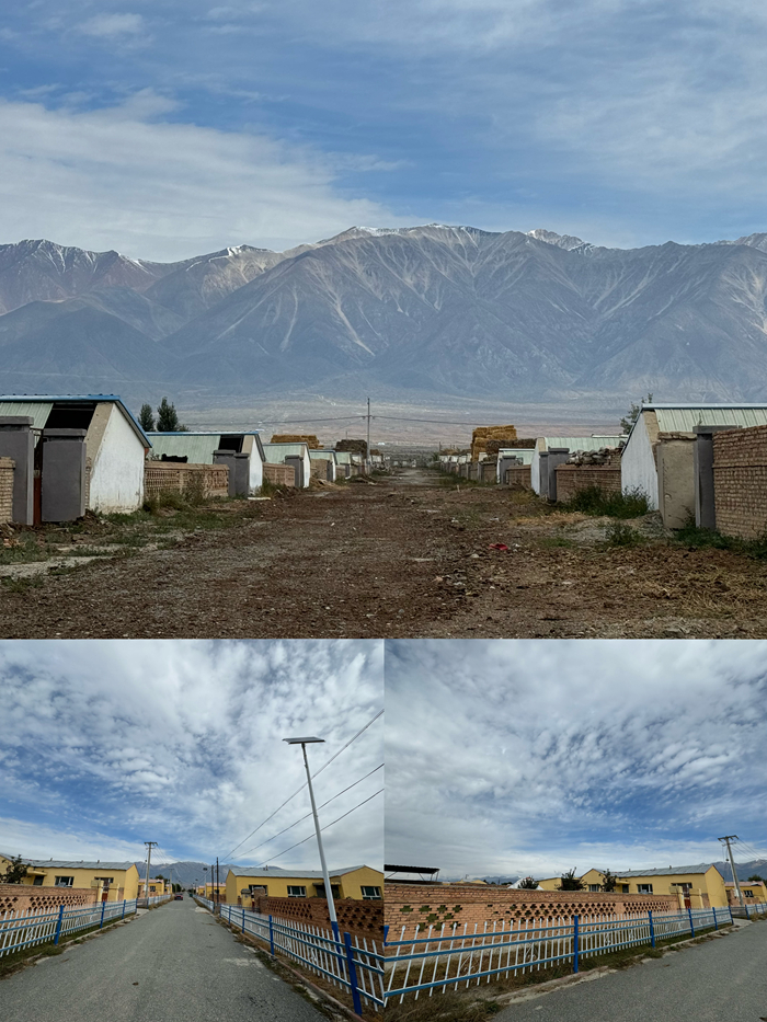 博爾塔拉蒙古自治州溫泉縣扎勒木特鄉(xiāng)浩圖爾哈隊的定居興牧點,人車道和牧道區(qū)劃分清晰,干凈整潔。新華網(wǎng)發(fā)