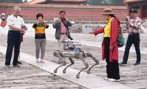 △游客圍觀拍照可愛(ài)機(jī)器狗