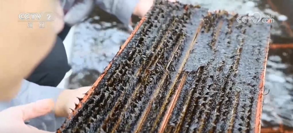 在福建省連江縣官塢村海帶育苗基地,黑壓壓的海帶苗整齊有序地平鋪在流動的海水里。漁民將一塊塊苗簾從苗池里打撈上來,解開繩結(jié)裝入泡沫箱中,準(zhǔn)備陸續(xù)運往大連。 這批海帶苗是當(dāng)?shù)刈灾髋嘤暮纾哂心透邷?、產(chǎn)量高等特點,成活率超過95%,往年在大連海區(qū)養(yǎng)殖5到6個月時間,畝產(chǎn)新鮮海帶可達30—35噸。