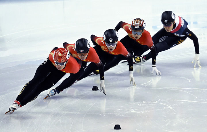 10月3日,朱祎玎、李坤、張柏浩(左一至左三)在比賽中。當(dāng)日,在2024上海超級(jí)杯短道速滑男子1000米A組決賽中,中國(guó)選手朱祎玎以1分26秒848的成績(jī)獲得冠軍,李坤和張柏浩分獲亞軍和季軍。新華社發(fā)(陳浩明攝)