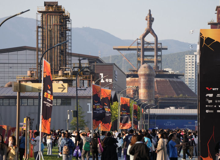 10月3日,游客來到首鋼園區(qū)參觀體驗(yàn)世界乒乓球職業(yè)大聯(lián)盟(WTT)中國(guó)大滿貫賽帶來的各項(xiàng)活動(dòng)。新華社記者 張晨霖 攝