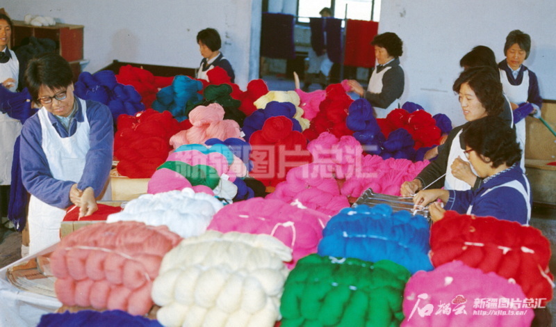 八一毛紡織廠生產(chǎn)的蜜蜂牌毛線,成為市場俏銷商品(1982年攝)。新疆圖片總匯資料圖片