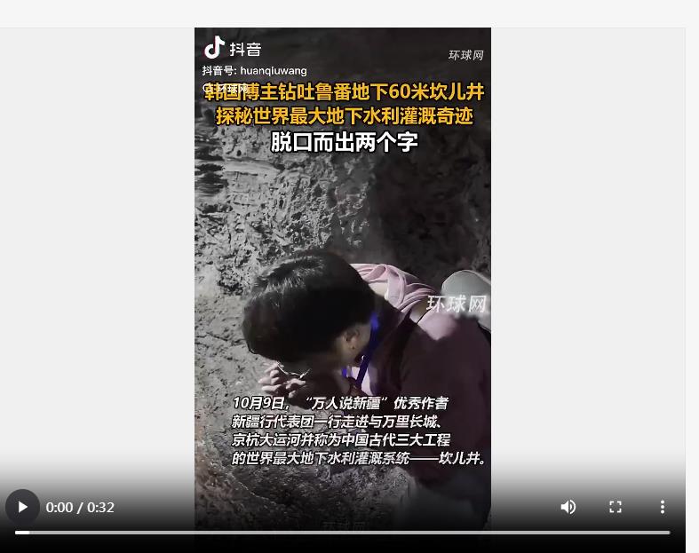 10月9日,韓國博主樸大一跟隨“萬人說新疆”優(yōu)秀作者新疆行活動來到吐魯番,探秘世界最大地下水利灌溉奇跡——坎兒井,瞬間被中國古代灌溉文化的博大精深所震撼!他由衷贊嘆道:“這井不一般,‘地下運河’的水真甜!”