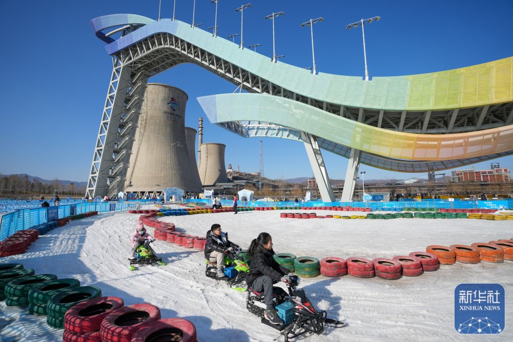 游客在首鋼滑雪大跳臺(tái)下的“首鋼園冰雪匯”體驗(yàn)雪上游樂(lè)項(xiàng)目(2023年1月31日攝)。 新華社記者 鞠煥宗 攝