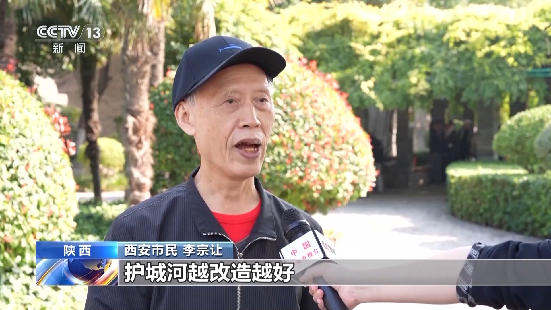 西安市民 李宗讓:護城河越改造越好,環(huán)境越來越好,大家在公園唱歌,心情就非常好。