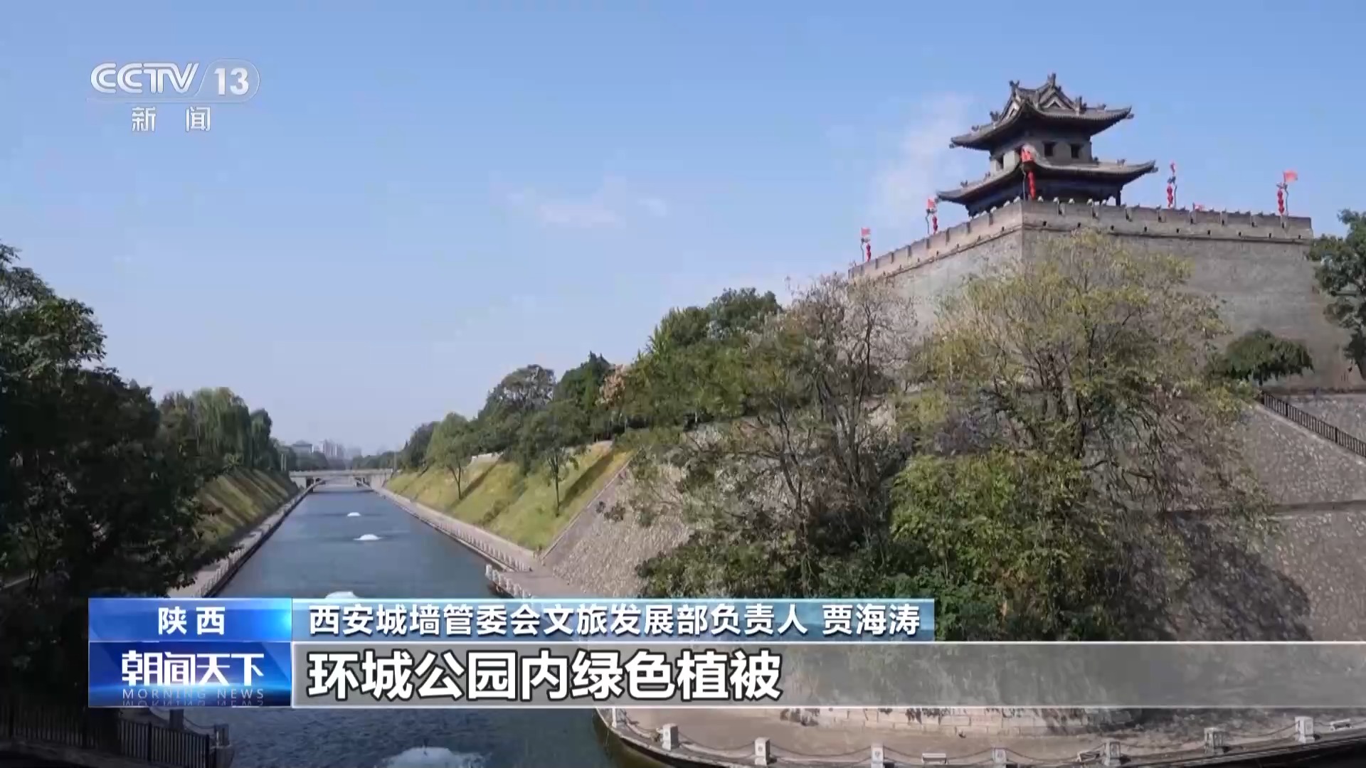 西安城墻管委會文旅發(fā)展部負責人 賈海濤:對護城河水體進行全面修復治理,改善和優(yōu)化水體健康,環(huán)城公園內(nèi)綠色植被達到了104.5萬平方米,栽植水生植物2000余平方米。